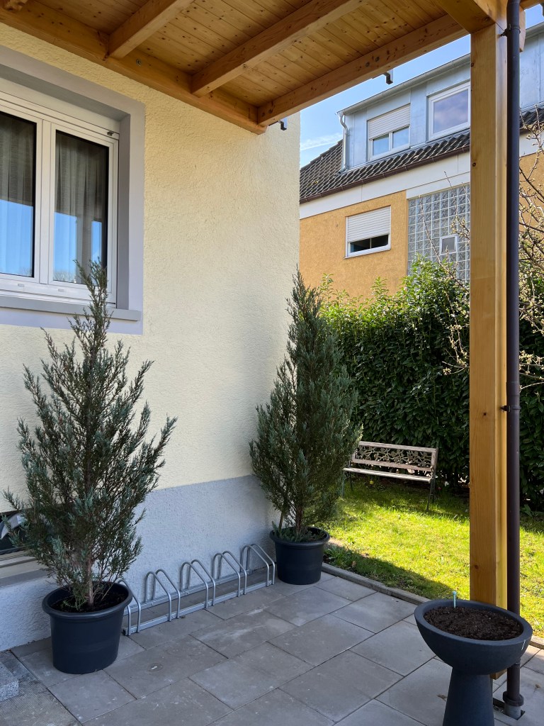 Der Aussenbereich wurde neu ausgestattet und entspricht nur noch in Teilen den Bildern. Hier können Sie im Freien sitzen, einen Kaffee trinken und eine Zigarette rauchen. Dies ist ein Bereich in dem Sie eventuell auf uns als Gastgeber treffen.